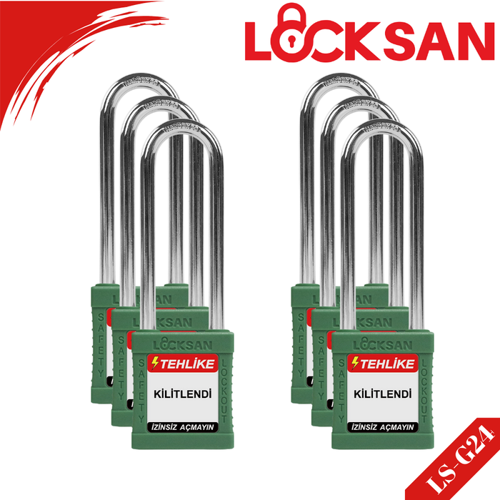 Locksan LS-G24-GRN, endüstriyel güvenlik ve LOTO (Kilitleme-Etiketleme) prosedürleri için özel olarak tasarlanmış yüksek dayanıklılığa sahip bir emniyet asma kilididir. 76 mm çelik çene, kimyasallara ve aşırı sıcaklıklara dayanıklı mühendislik plastiği gövde ve kendiliğinden elastik kilit mekanizması ile maksimum koruma sağlar.